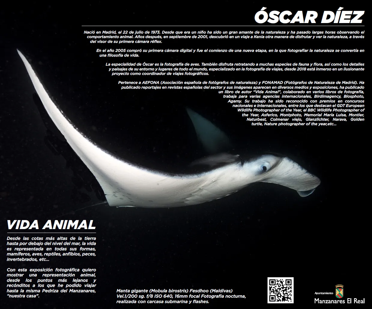 With this photographic exhibition, I aim to present a portrait of animal life — from the most distant and remote places I have been able to visit, to La Pedriza del Manzanares itself, “our home.”