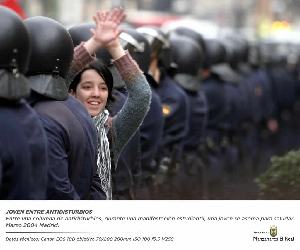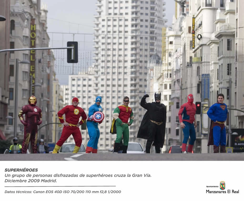 From Madrid to New York: innocence breaking through police lines or splashing in the mud; buses moving to the rhythm of an accordion; politicians losing their step; anonymous superheroes; wedding kisses reflected in guests’ faces… Gestures, portraits, landscapes, moments — eternal flashes of transience. Joys, sorrows, light, shadows, introspection, fleeting existences.