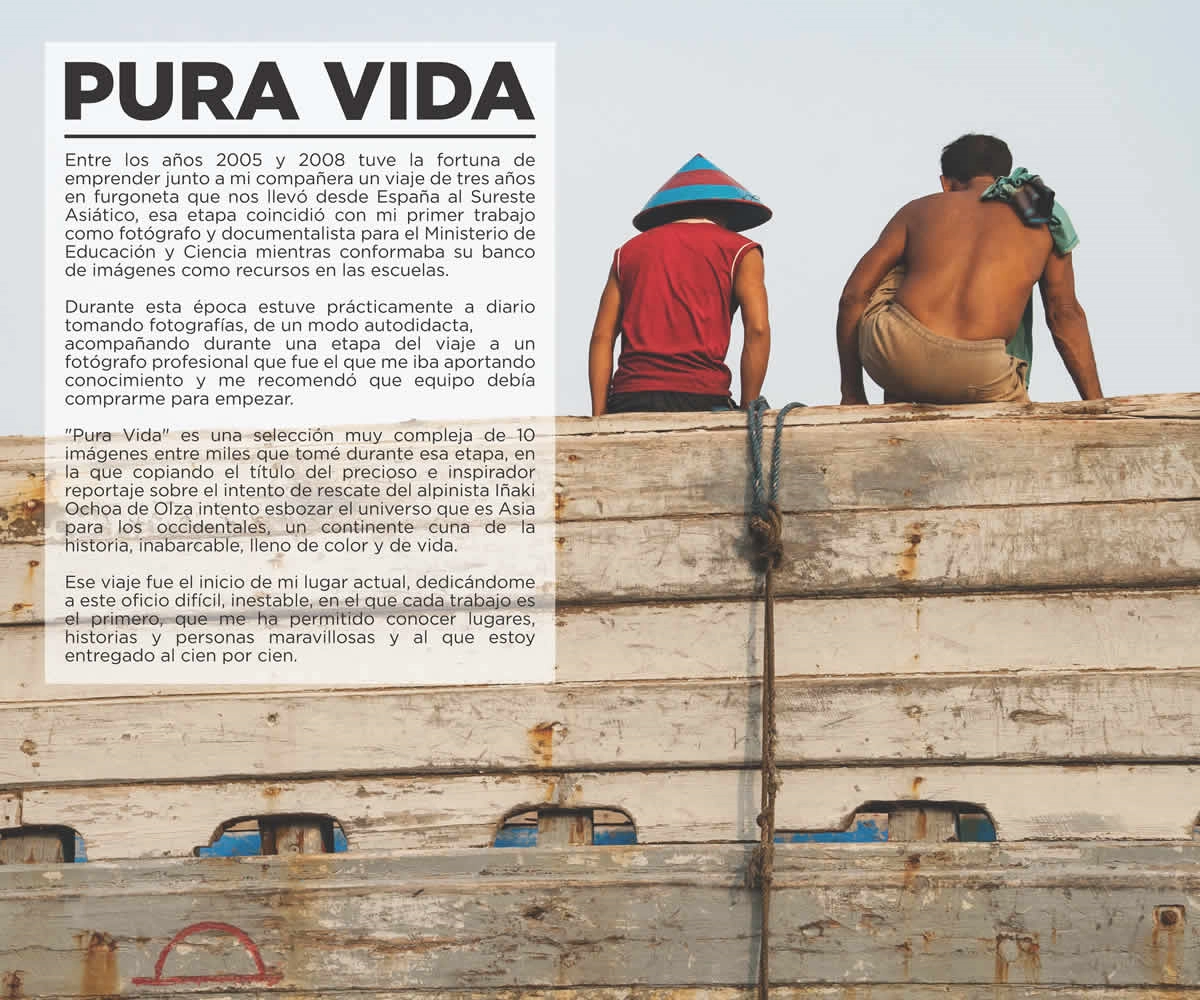 “Pura Vida” is a carefully selected series of 10 images chosen from among thousands taken during that stage. Borrowing its title from the beautiful and inspiring documentary about the rescue attempt of mountaineer Iñaki Ochoa de Olza, it seeks to outline the vast and fascinating universe that Asia represents for Westerners — a continent that is the cradle of history, immense, full of color, and bursting with life.